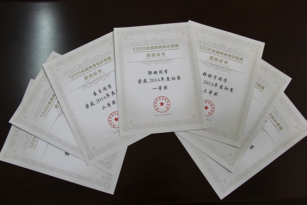 由商务部外贸发展局举办的2014年度12335全国商务知识竞赛初赛结果日前揭晓,我院刘宁宁、郑凌霄、董金玲等教师指导的8名学生分获大赛一、二、三等奖。他们是网经专业的郭超(一等奖),财税专业和国贸专业的蔡文静、袁月、周然(二等奖),潘晨、张振宇、李倩、程一凡(三等奖)。