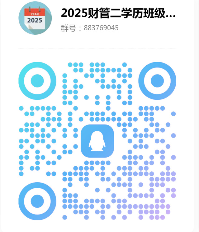请有意向报名的同学扫描下方二维码加入2025级财务管理专业第二学历学生QQ群:883769045 ,加入时请务必实名备注主修专业+姓名。