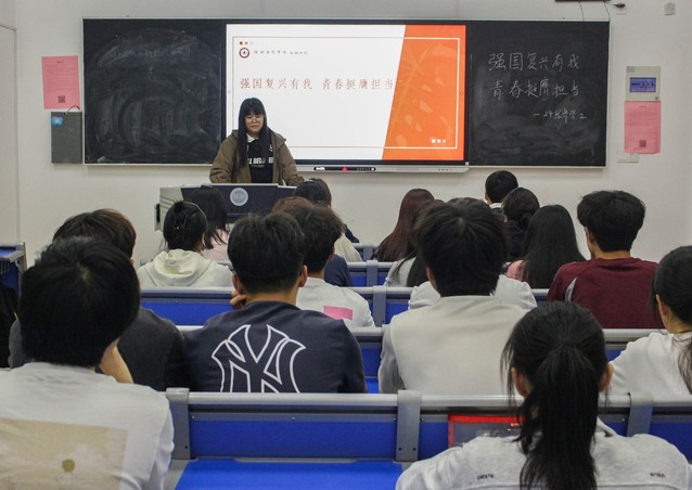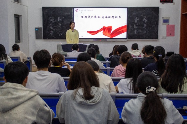 各班团支书精心准备,播放爱国主义教育相关视频让学生直观感受先辈们的爱国情怀与奋斗精神,领悟五四运动中青年学生为民族解放与国家振兴所展现出的坚韧不拔和勇于担当的精神。同时,团支书结合现实案例,深入讲解五四精神内涵,引导学生深刻认识爱国、爱党、爱社会主义三者的有机统一,激发新时代青年继承和发扬五四精神,勇担时代责任,投身于强国复兴的伟大事业。