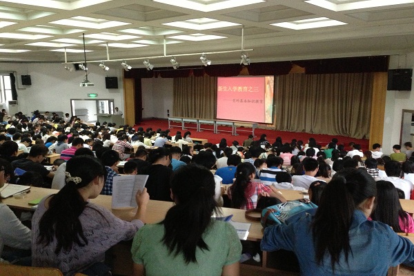 团委副书记李强老师从如何认识中国共产党、如何加入中国共产党以及如何解读中国梦进行入手,进行理想信念教育,使学生了解党的基本知识,激发他们的爱国主义信念,引导同学们树立为祖国繁荣而奋发学习的崇高理想。职业生涯规划教师赵国清老师精心备课,开展了大学生涯规划教育,让新生明确社会角色意识,承担起肩负的社会责任,从学习、工作 、生活各个方面进行协调和提高。