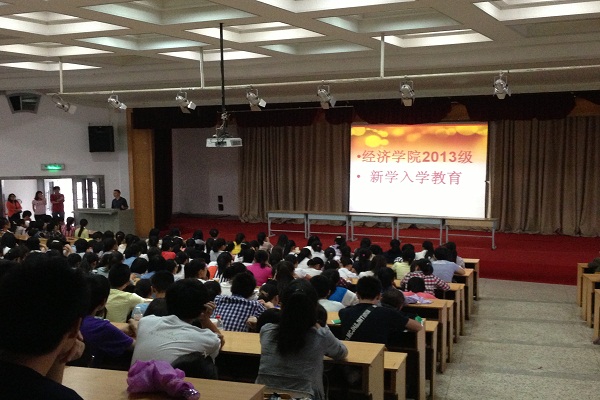 经济学院2013年级有国际经济与贸易、财税、金融、电子商务4个专业方向,10个班,共计523人。为了让刚入学的大一新生尽快适应大学的环境、生活、学习,成功实现由高中生到大学生的转变,根据学校的要求,结合学院实际,经济学院精心组织,认真安排,制定详细计划,开展了内容丰富的入学教育活动,包括:校史校情教育、校园安全教育、党的基本知识教育、大学生涯教育、校规校纪教育、广播体操学习、专业思想教育等。
