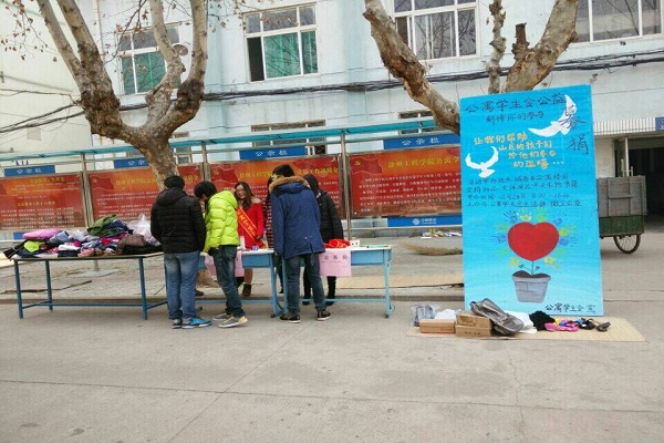 活动现场,大家都很热心地想要为孩子们献出自己的一份力。有的同学直接拎了一蛇皮袋的衣服来到现场,有的则捐出了许多图书,还有些同学特别贴心,将自己的爱心一针一线地织进围巾、手套、帽子里,把温暖送给远方的孩子。东西无所谓多少、新旧,只为能解孩子的一时之需。就如爱心无所谓大小,只要本质相同。虽然天气很冷,但并没有影响同学们对于本次公益募捐活动的积极态度和热情,也许我们能做的并不多,可只要我们行动起来,再微小的力量也能使那些山区的孩子们感到温暖。