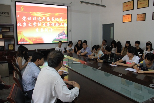 为贯彻习近平总书记在北京大学师生座谈会上的重要讲话精神,经济学院组织同学开展了系列学习活动,将习总书记的新时代精神传达落实。