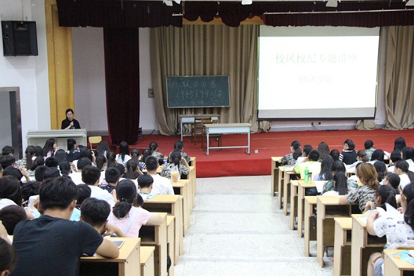 为了加深大一新生对大学生活的了解,帮助学生进一步认识自我,明确发展方向、养成遵纪守律脚踏实地的好习惯,2016年9月7日下午经济学院在南主楼报告厅开展了校风校纪专题讲座。本次讲座由学生科科长郝景亚老师主讲,全体2016级新生参加了此次讲座。