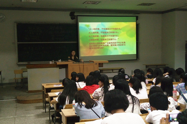 首先张老师向同学们讲述了如何过好大学生活,为新生提供了一个比较全面和完善的大学规划,并从自身学习实践经验和工作经历,讲述新生在校期间应如何加强专业能力,提高自身综合素质,学会确立目标、自知自立自强。随后张老师还给新生提出了建设性的意见,希望同学们树立短期目标,中期目标,长期目标,人生目标等等,使得广大同学受益良多,引发了同学们积极深入的思考。最后新生就自己困惑的问题与辅导员进行了互动,使同学们对专业和大学有了深层次的了解。此次讲座内容丰富、意义重大,最终在一种温馨积极的气氛中圆满落下帷幕。