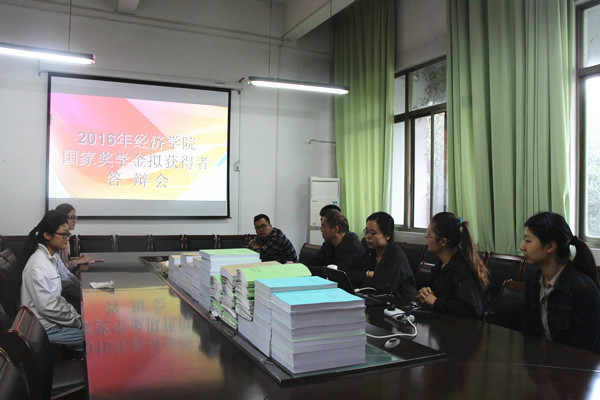 国家奖学金申请流程分为个人申报,辅导员推荐、学院资格审核,经筛选最终有3名学生作为拟获得者参加答辩。答辩会分为事迹陈述、现场提问、评委讨论三个环节,首先参加答辩的学生从学习成绩、思想品德、综合发展等方面对自己的大学生活进行总结,随后评委老师进行提问,最后各位评委就每位参加答辩学生的个人情况进行讨论。最终确定13金融1班周亚兰、14财税1班丁加齐、15财税1班张玉这三名优秀学生成为经济学院2016年国家奖学金申报者。