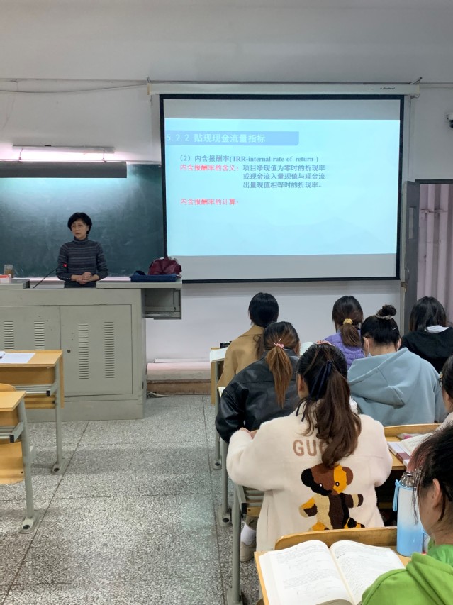 下午,我院成兵副教授在城南教学主楼A201开设《财务管理》公开示范课,成老师从贴现现金流量指标和非贴现现金流量指标两方面进行讲授。从含义、计算公式、计算步骤、决策规则和优缺点对内含报酬率、获利指数、投资回收期和平均报酬率四个方面有机的融入思政内容进行对比分析,让学生更透彻的理解知识点。