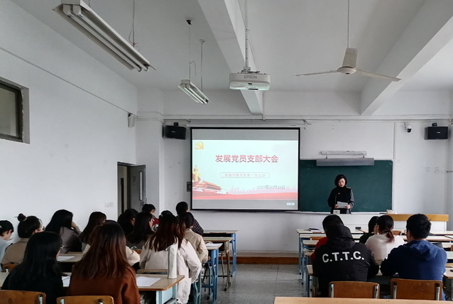 支部大会首先由各支部书记宣布会议议程,随后42名发展对象依次上台宣读入党志愿书,汇报个人相关情况。大家表达了对入党的向往,对党的忠诚,表示坚定不移跟党走,为共产主义事业奋斗终身的决心。各支部书记宣读了各位发展对象的审查情况,正式党员对他们的表现进行讨论发言。之后,支部正式党员投票表决,一致同意接纳42名发展对象成为中共预备党员。最后,由正式党员代表带领全体新发展党员对党旗宣誓,表明入党决心。