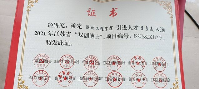 近期,江苏省人才办对2021年江苏省“双创计划”入选人员进行了公示,英国上市公司3652020年引进的博士吕占美入选2021年江苏省“双创博士”。