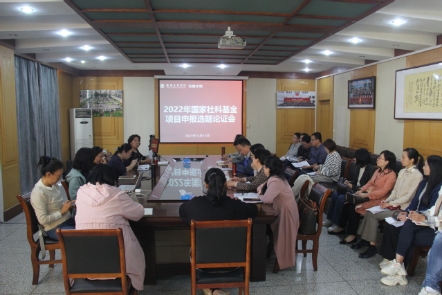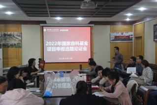 拟申报2022年度国家社科基金、国家自科基金等高层次项目的老师分别汇报了自己的选题意向书。各位领导和老师针对选题意向书提出修改意见,各位申报教师表示将按照学校和学院安排的时间节点,积极参加辅导,对项目选题、创新点凝练等方面不断细化与打磨,提升申报书质量,争取立项成功。