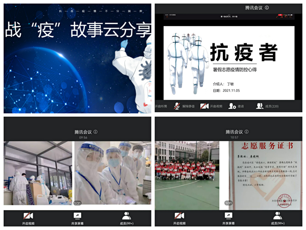 分享会上,共有7名战疫志愿者讲述他们的抗疫经历,分享了自己在参与过程中的感动与收获,数百名金融学子参加了此次分享会。暑假期间,他们配合社区发放物资、测量体温、慰问高龄老人、做核酸……防护服下的汗水、无数忙碌的日夜都展现出了新生代青年的使命与担当。志愿者纷纷表示,在今后的生活中将继续弘扬志愿精神,为坚决打赢疫情攻坚战奉献青春智慧与力量。