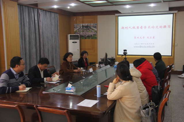 为提升我院教师学术论文写作水平,2021年12月14日下午,我院邀请常州大学教授、硕士生导师、常州大学学报编辑部主任王卫星作了《科研论文写作方法与技巧》的专题讲座。我院30余名科研骨干教师认真聆听了讲座。院长董金玲教授主持会议。