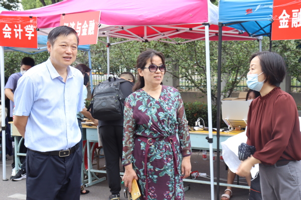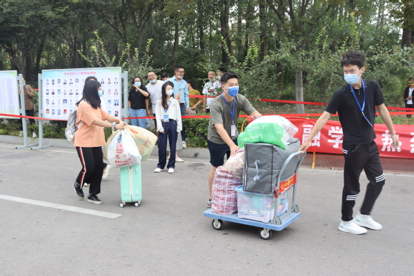 院党委书记李浩、院长董金玲、院党委副书记张莹到现场指导工作,向奔波忙碌于各个迎新岗位的教师和学生志愿者致以真切慰问。学院领导详细询问迎新工作进展情况,强调迎新工作的注意事项,与前来报到的新生亲切交谈,认真倾听他们的需求并积极联系各方协调解决。辅导员老师深入迎新工作现场,就工作中可能出现的问题与突发情况作出了具体指导。针对新生家长不能入校等情况,学院安排70名志愿者参与“一对一”助力迎新工作,他们为新生办理入学手续、搬运行李、安排住宿、熟悉环境,给予了新同学“金院版”的专属温暖和归属感。