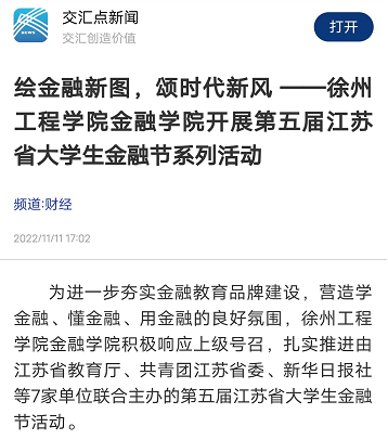 11月11日新华日报客户端和交汇点新闻报道我院金融节系列活动