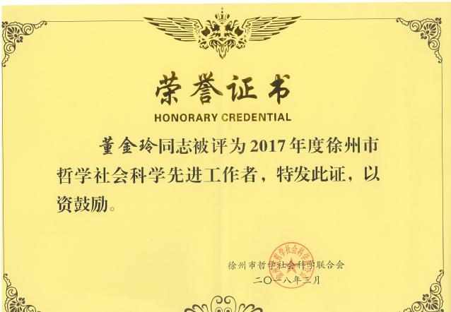 董金玲教授荣获“2017年度徐州市哲学社会科学先进工作者”称号
