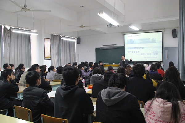 人类进步、社会发展、经济繁荣都离不开管理。现实生活中,每一个人不是管理别人就是被别人管理。管理关系到我们每个人的切身利益,是人类共同劳动和生活的需要。现代意义上的管理是指对一个组织所拥有的资源——人力资源、财力资源、物质资源和信息资源等进行有效的计划、组织、领导和控制,用最有效的方法去实现组织目标的过程。2012年11月9日下午,经济学院院长孙勤教授给经济学院部分同学做了题为“现代企业管理——理念、方法、技术”的学术讲座。