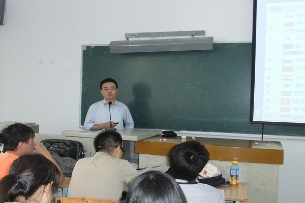 2012年9月13日下午16:00,由经济学院组织的经济与金融热点问题系列讲座第三讲在城南校区南主楼A302隆重举行,本次讲座由经济学院实验中心主任刘祥成博士主讲,题目为“我国外汇储备的保值与增值”。