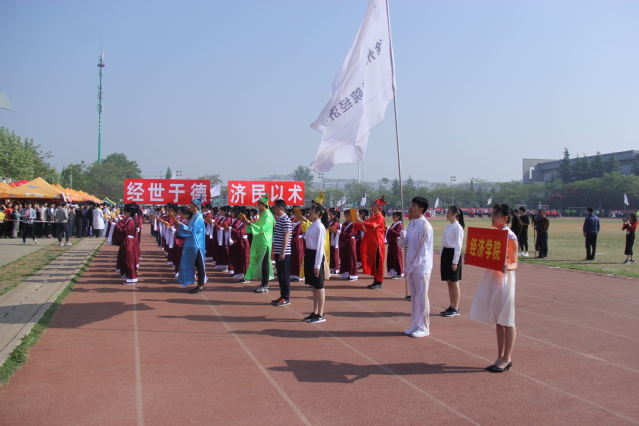 经济学院的气球方阵成为开幕式创意新颖、精彩纷呈的亮点节目。经济学院以北宋王安石“因天下之力,以生天下之财,取天下之财,以供天下之费”作为人才培养理念,将弘扬中华传统文化与专业文化建设相结合,秉持着“经世于德,济民以术”的院训精神,展现经院学子博大情怀。学生方队身着宋朝书院服,手持竹简,气宇轩昂。教师和学生方阵精神饱满、步伐矫健、口号嘹亮,阔步通过主席台,师生们以昂扬向上的精神状态以及开展阳光体育活动的风采接受校领导和全校师生的检阅。