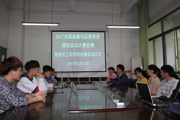 近日由全国金融职业教育教学指导委员会主办的2017全国金融与证券投资模拟实训大赛拉开了帷幕。本次大赛面向两岸三地金融类院校的在校学生举行,参赛院校100多所,参赛学生近6000人,比赛采取团体赛制,不分组,所有团队学生同台竞技;大赛分为初赛和总决赛两部分,初赛为证券投资模拟实训大赛,总决赛采取现场PPT演讲和答辩的形式,综合评选出冠、亚、季军。我校经济学院于4月24日上午组织了2017全国金融与证券投资模拟实训大赛初赛暨徐州工程学院校赛开幕会。