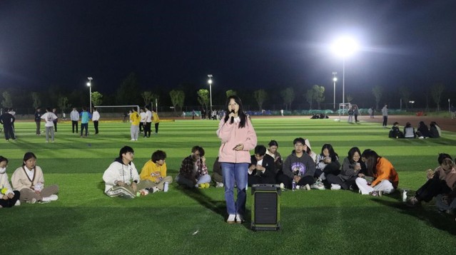 歌声萦耳畔,情深意绵长。音乐会现场,同学们或席地而坐,或驻足聆听,赶赴与音乐的邀约。漫天星斗之下,大家围坐在操场,动人而婉转的歌声将音乐会推向高潮。《七里香》的彻夜细雨,诉说着烂漫纯真的美好;《将故事写成我们》的句句誓言,见证着从青涩到成熟的蜕变;《月光》的清澈明朗,映射了对幸福未来的憧憬与向往;《雅俗共赏》的豁然之解,道出了无畏雅俗、孤芳而自赏的超脱真谛。晚风轻拂,星辰漫天。浪漫悠长的华语音乐,灵动自由的粤语金曲,熟悉动人的流行乐,让静谧的校园愈发多姿多彩、热闹非凡。歌手们以最饱满、最真挚的情感,尽情演绎自己的歌曲,营造了轻松愉悦的活动氛围,为观众打造了一场精彩绝伦的视听盛宴。和煦的春风,悠扬的乐曲,音乐会让青年学生在春意浓浓的夜晚陶冶了情操,展现了青春校园的独特魅力。明月中天,繁星璀璨,春日草坪音乐会在袅袅余音中圆满落下帷幕。