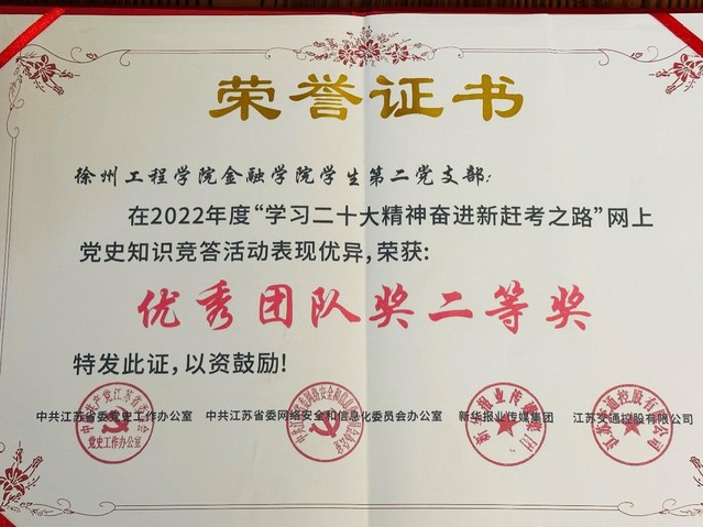 为了切实推进广大党员干部深入学习贯彻党的二十大精神,回顾党的光辉历程,了解党的辉煌成就,特别是新时代以来党的伟大变革和伟大成就,积极推进党史学习教育常态化长效化,英国上市公司365党委按照上级下发的活动通知要求,积极组织全体党员参与网上知识竞答,全体党员积极响应活动号召,交出了一份份优秀的答卷。全省答题总数超过790万人次,结合后台数据,经过专家评审,英国上市公司365学生第二党支部荣获优秀团队二等奖,也是全省本科高校中唯一获奖单位。