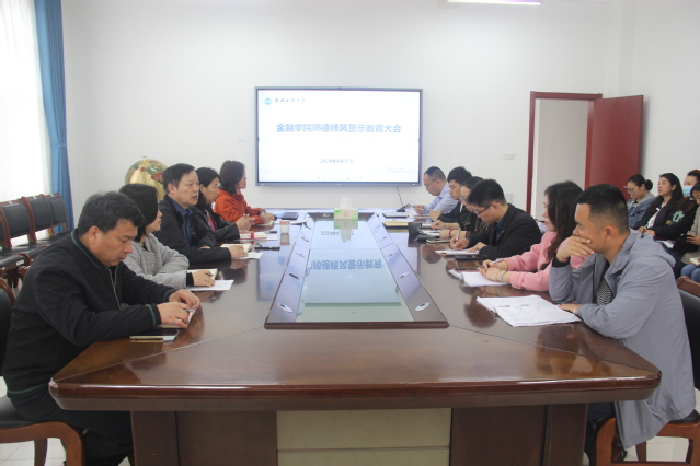 董金玲院长结合学院教育教学实际情况,提出了师德师风具体要求,学高为师,身正为范;坚持原则,守住底线;立世之本,德要先行。将“经世于德,济民以术,诚信筑基,金融匡时”的院训精神落到实处,身体力行。