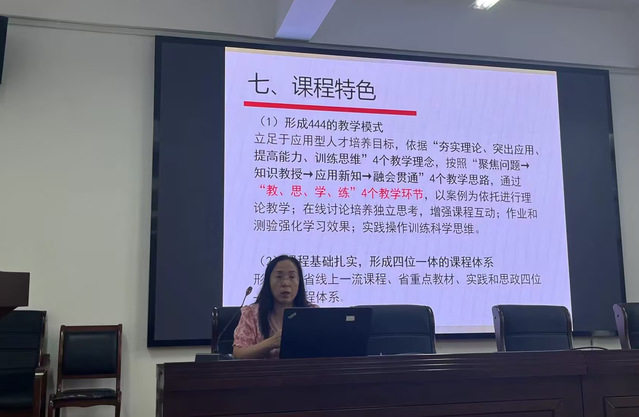在“说课程”活动中,各课程负责老师从课程设置、课程目标课程思政、教学内容、教学设计、考核方式、课程教学改革的方向与路径、教学资源等方面进行深入浅出的阐述。教师们不仅展示了扎实的专业知识,更体现了对教学方法的创新和思考,既注重知识的传授,又注重学生能力的培养和核心素养的提升。他们分享了如何激发学生的学习兴趣和主动性,以及如何利用多元的评价方式评估学生的学习效果。