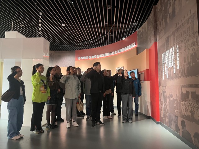 在中国教师博物馆,老师们在讲解员的带领下,依次参观学习了《教师的历史》《教师的摇篮》《教师的典范》三大主题展区,细致了解了中国教育发展的历史脉络和教师群体的崇高精神。在展馆中,馆内的一件件珍贵展品、一个个楷模故事,使老师们重温了“学高为师、身正为范”的职业要求,深刻领会作为人民教师的职责与情怀。参观尾声,全体参与教师在学院党委副书记张莹的领誓下,举起右手,庄严宣誓,“我宣誓,我志愿做一名光荣的人民教师......”誓言声声,回荡在中国教师博物馆的每个角落。