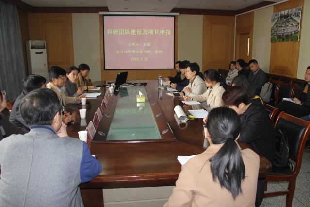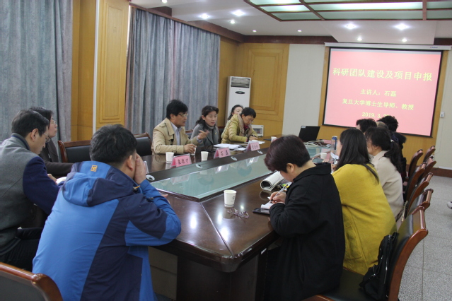 为加强科研团队建设、提升学术科研水平,2019年3月22日下午,我院邀请复旦大学博士生导师石磊教授与我院教师就“科研团队建设及高层次项目申报”进行了座谈。我院副高以上骨干教师及青年教师近30人参加了会议。院长董金玲教授主持会议。