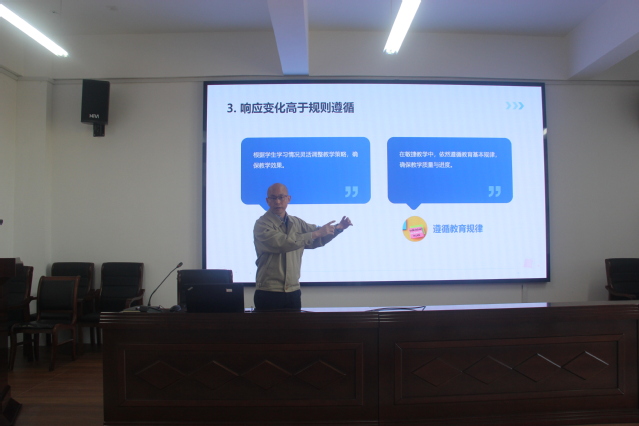王然、马忠民、程芳、周仕通、吴丽君、赵爱文等老师分别作了“教育教学改革思路”主题报告。他们从教学内容创新、教学理念创新、教学方法创新、教学过程创新以及教学考评创新与反馈创新五个角度进行介绍,重点强调了敏捷教学方法在课堂教学中的应用。在教学内容上,选择学生感兴趣的点,巧妙融入课程思政元素,注重多元化考评,通过多种途径激发学生内在的学习兴趣,引导学生主动学习。在教学方法上,注重与学生互动,融入案例教学、参与式教学,创新教育教学方法,提升教学水平,实现教学相长。