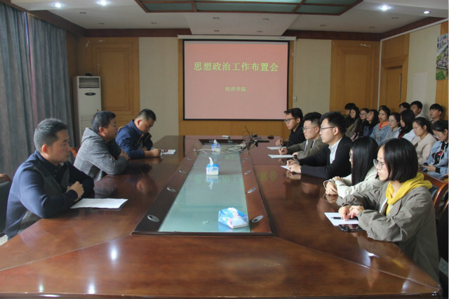 会议由周珊珊副书记主持,崔德才书记重点从以下几个方面做了工作布置。第一,要充分认识高校思想政治工作的重要性。树立大思政工作理念,按照“三全育人”要求,要把思想政治工作贯穿教育教学全过程,形成大思政的环境与合力,真正实现全员育人、全程育人、全方位育人,坚决改变专任教师重业务轻思政、辅导员教师种日常管理轻思政的现象;第二,抓好具体工作,要紧紧扭住“任务落实”之本,重点把握三方面工作。一要深入学习宣传贯彻党的十九大精神,紧密团结在以习近平同志为核心的党中央周围,以习近平新时代中国特色社会主义思想为行动指南,坚定不移地把思想和行动统一到中央、省委、学校的工作部署上来,统一到学院党委的决策要求上来。二要进一步加强和改进新形势下学院的思想政治工作,不断增强思想政治工作的时代感和吸引力。要着力提高思想政治工作的针对性、有效性,牢牢守住意识形态阵地,落实思想政治工作责任。三要发挥好几个阵地渠道的作用。要抓好主阵地,上好思政课;要用好主渠道,发挥课堂教学作用;要用好实践平台,发挥好实践育人的作用;要善用新阵地,发挥好网络新媒体作用;第三,要善于总结反思,坚持问题导向,找出差距不足,推动工作取得实效;第四,要增强政治学习的主动性、积极性,坚定理想信念,入党积极分子要端正入党动机,党员同志要争做合格党员,发挥模范带头作用,团结带领周围同学,形成互帮互助的良好氛围。