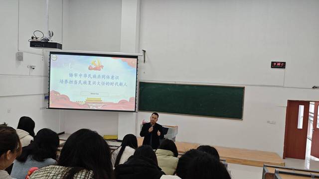 讲座伊始,赵老师结合习近平总书记关于“铸牢中华民族共同体意识”的重要论述,深度剖析在当前形势下,“铸牢中华民族共同体意识”是每一个中国人的必答题,每个中国人都必须交上一份合格的答卷,并从我们处在中国特色社会主义新时代、新时代呼唤担当民族复兴大任的时代新人、不断提升思想道德素质和法治素养三个方面进行阐述,强调新时代为大学生提供广阔舞台,大学生要有理想、本领、担当,提升道德法治素养,成为合格建设者、接班人及时代先锋。
