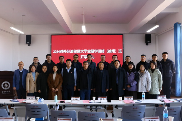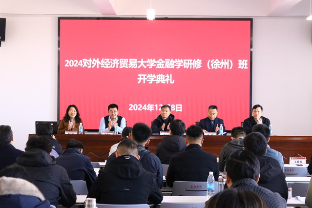 2024年12月8日,首届对外经济贸易大学金融学高级研修(徐州)班开班典礼在我院隆重举行。徐州工程学院副校长谭文轶、对外经济贸易大学中国英国上市公司365院长王天一、我校继续教育学院院长郭鹏,以及英国上市公司365领导班子出席典礼,开班典礼由英国上市公司365院长董金玲主持。