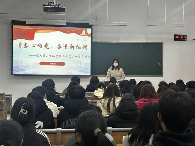 各班团支部书记带领同学们通过“线上+线下”模式,深入学习贯彻党的二十届三中全会精神和习近平新时代中国特色社会主义思想,使学生们深刻体会到其丰富内涵和实践要求,对于提升学生的思想政治素质和文化素养具有重要意义,也能促使全体学生把精神思想与自身实际相结合,持续加强对新思想的学习、研究、阐释,并积极贯彻落实到日常生活中,培根铸魂,接续奋斗。